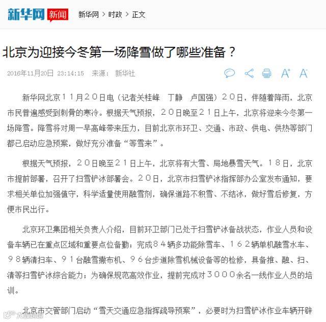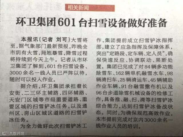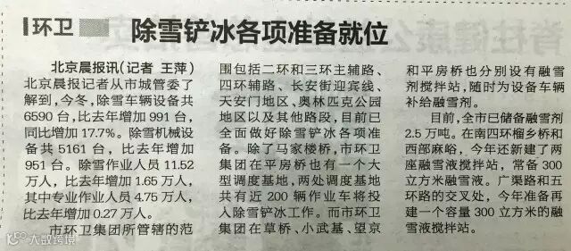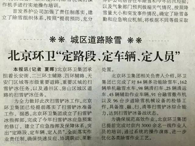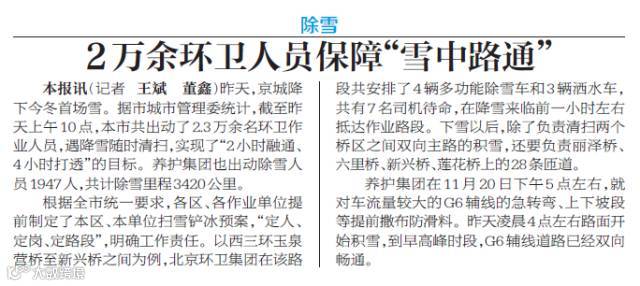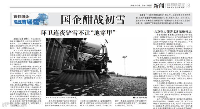 ——11月21日,《北京日报》对集团备战初雪的情况进行了报道。