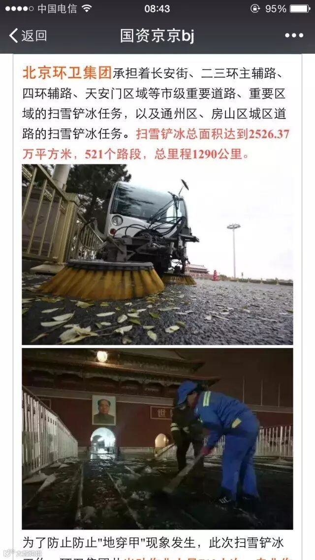 11月22日,市国资委官方微信国资京京bj在《致敬寒潮下的首都国企人》中,介绍了集团扫雪铲冰的整体情况。