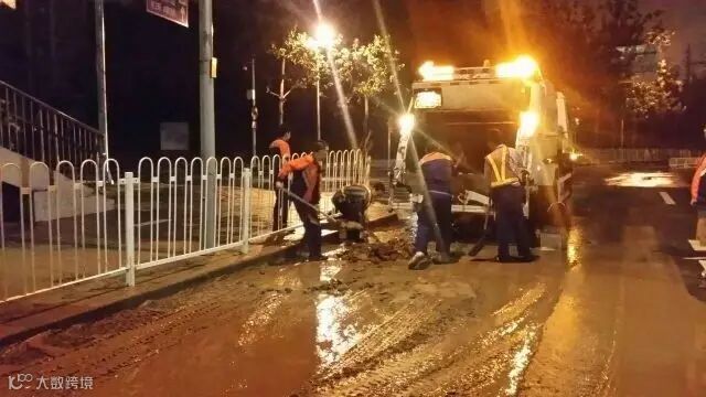 大雨中,作业人员一直忙到今天凌晨5点。经过5个多小时的奋战,淤泥清理任务圆满完成,路面恢复干净。