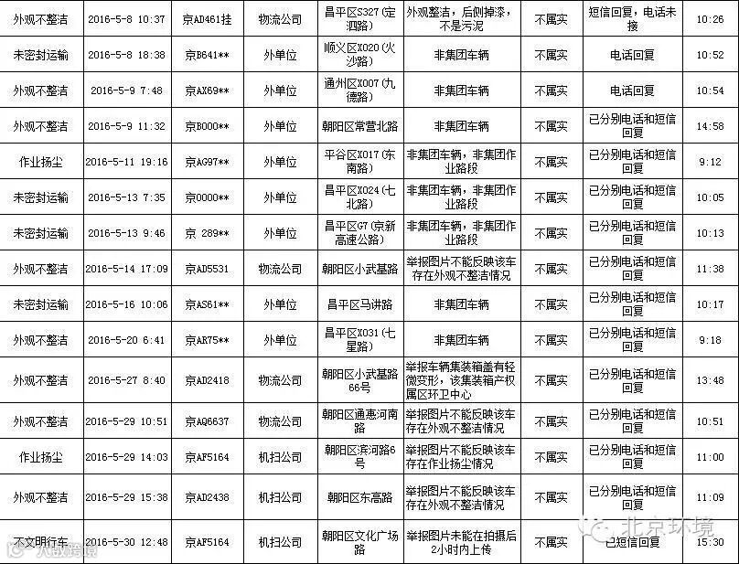 活动开始至今已整整一个月了,这期间环卫集团共收到有效举报30次。其中外单位车辆20次,北京环卫集团车辆10次(其中机扫公司车辆5次,固废物流公司车辆5次),无确认属实问题。