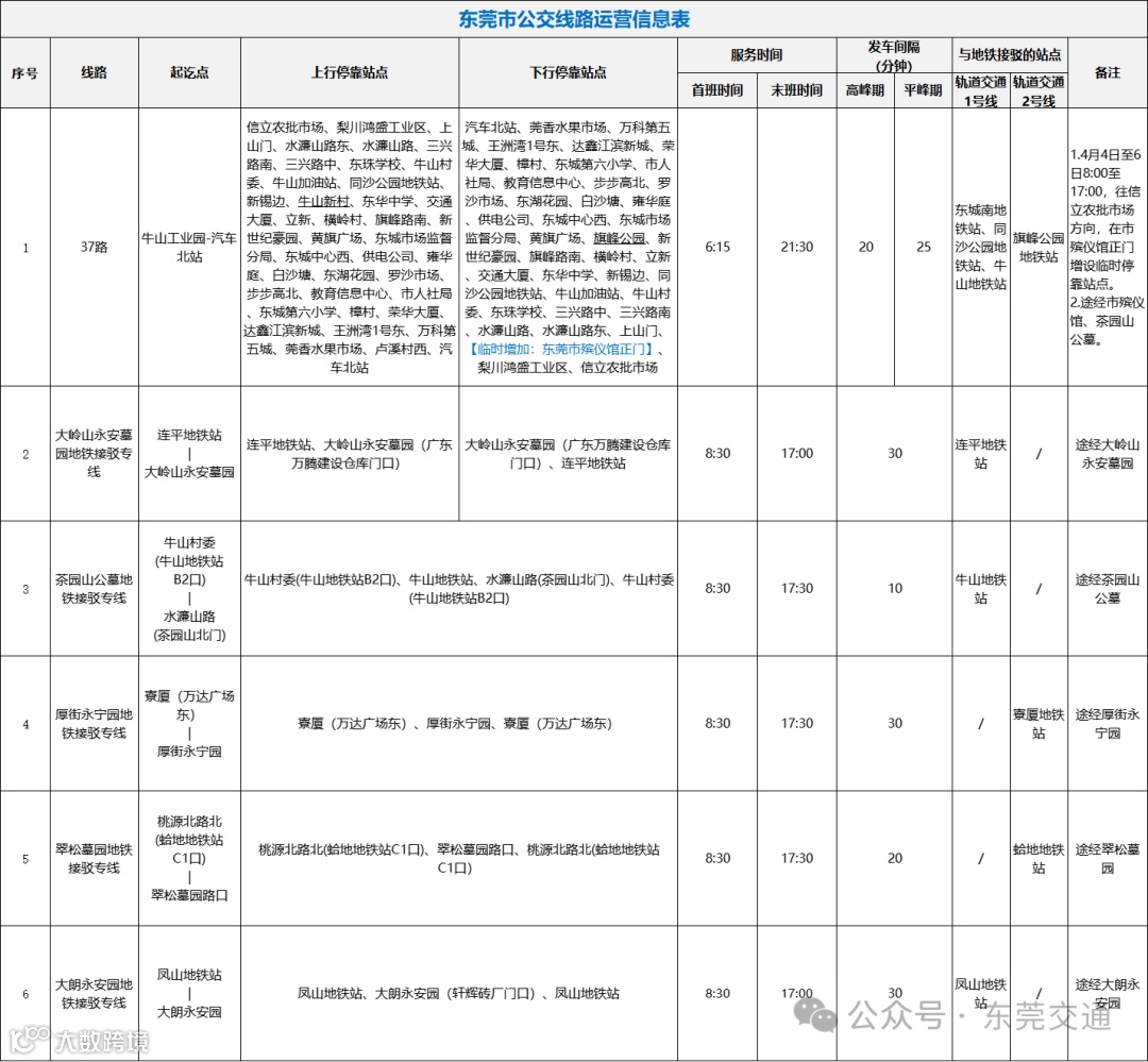 在2026年4月4日至6日的8:00至17:00,往信立农批市场方向在市殡仪馆正门增设临时停靠站点,线路可覆盖市殡仪馆、茶园山公墓,接驳东城南地铁站、同沙公园地铁站、牛山地铁站、旗峰公园地铁站。