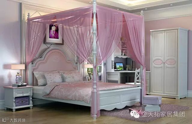 高柱床是宫庭贵族家具特点之一,如果说美式风格的家具是将欧式的高贵、奢华平民化,那么本款床则是将美式风格的家具精致化,在产品造形上提炼了美式家具的经典特点,以白色为主色搭配上粉色,显得温馨浪漫,打破了美式家具给人感觉粗犷、厚重、质朴的传统印象。