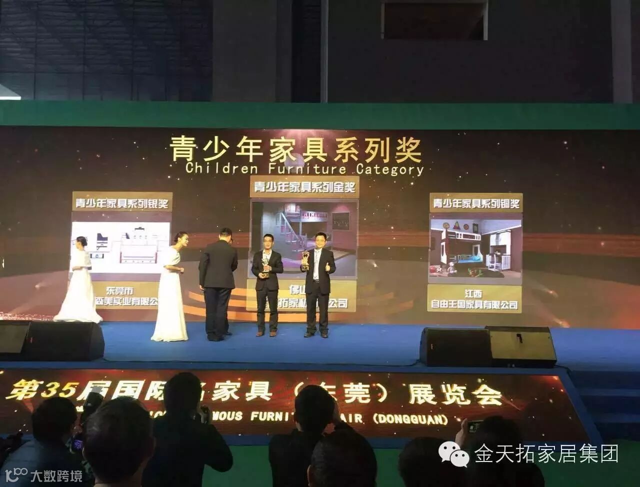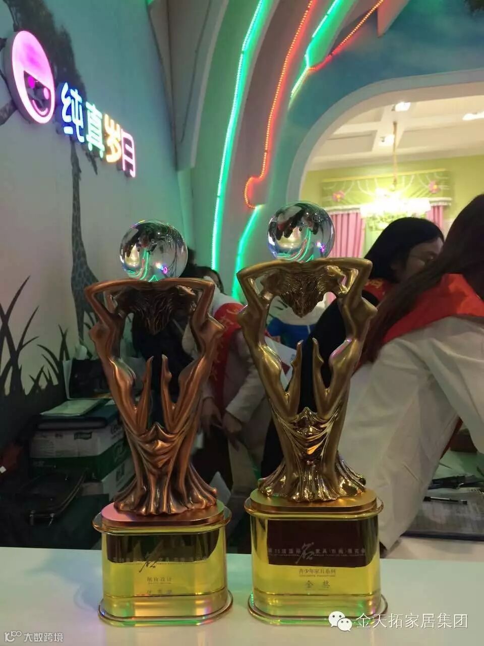 (图中左边为“展位设计 优秀奖”,右边为“青少年家具系列 金奖”)