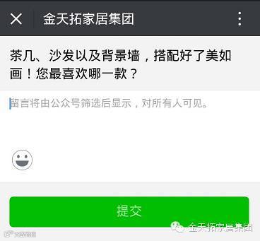 如果您对金天拓(家居)集团微信平台所发的内容有话要说,只要页面翻到文章最后,点击底部右下方的“写留言”。(如下图所示)