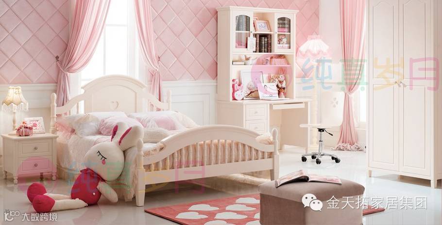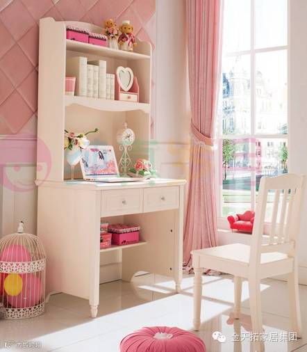 纯真岁月•至韩系列产品,现代韩式的设计风格,温馨浪漫茉莉花白的独特色彩,粉色的点缀,让孩子的卧室更显温馨。