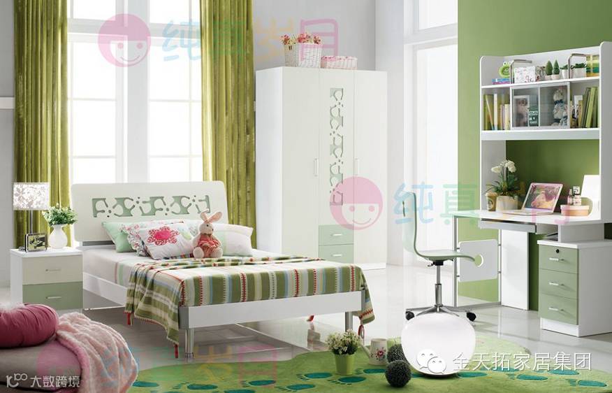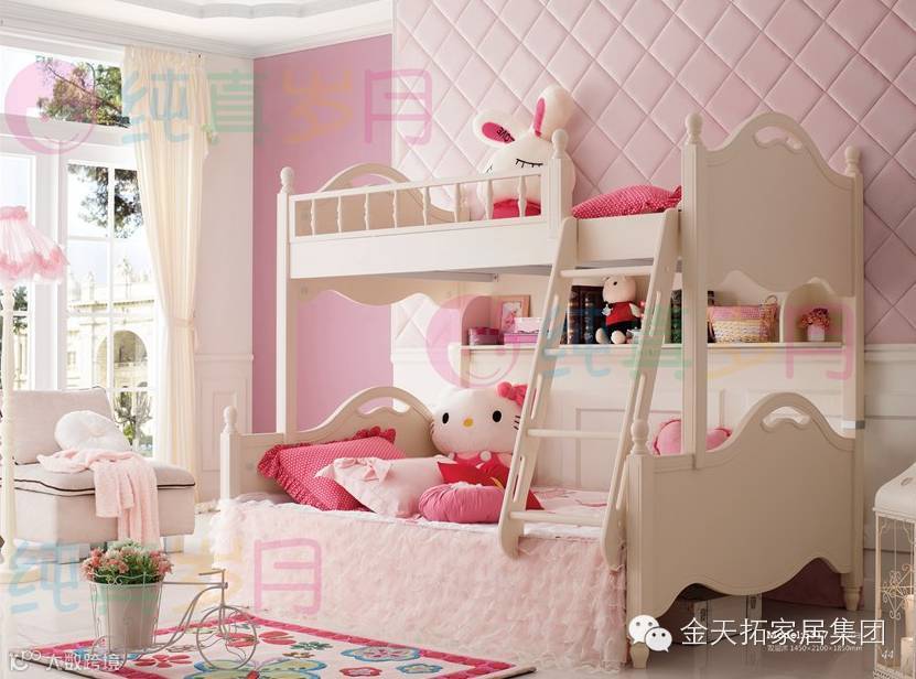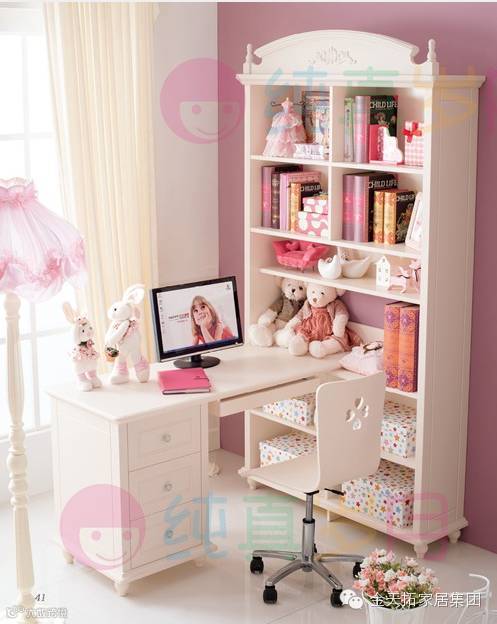 纯真岁月•至韩系列产品,现代韩式的设计风格,温馨浪漫茉莉花白的独特色彩,粉色的点缀,让孩子的卧室更显温馨。