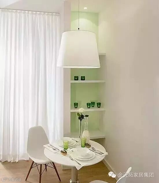 两个人的时光,不用太多美丽的装饰和点缀,白色的浪漫空间,墙角处那淡淡的绿色在灯光的映照下,格外的清新动人。