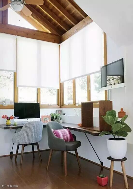 转角设计的书房,配合木屋的设计,简约的设计,带点东南亚的风情,窗外的自然的美景,只想安静地做个好学生。