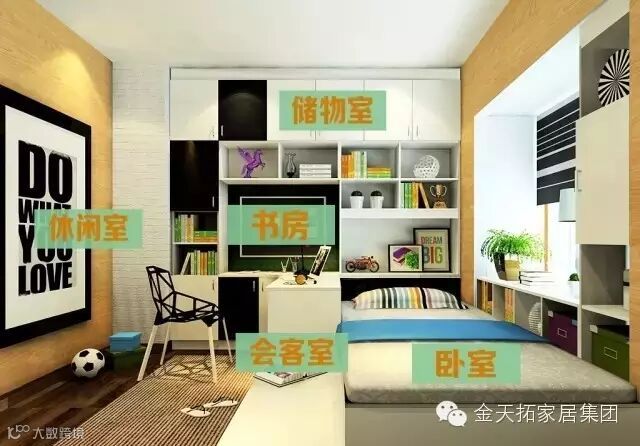 ▲最后,再来上一张一房五用的榻榻米,被惊到了有木有!榻榻米披上被子和枕头就可以是一个小床,这样节省下来的还有休闲空间,入墙柜的设计,柜体的科学搭配,增大储物空间。