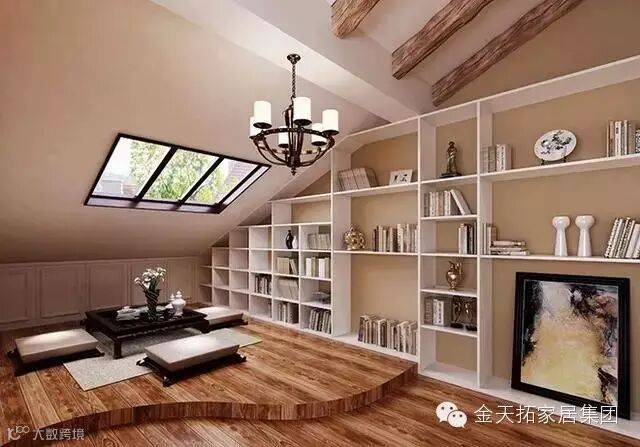 ▲将小阁楼打造成书房也是一个不错的选择,利用抬高设计做成榻榻米区域,不会显得拥挤,反而宽敞明亮。