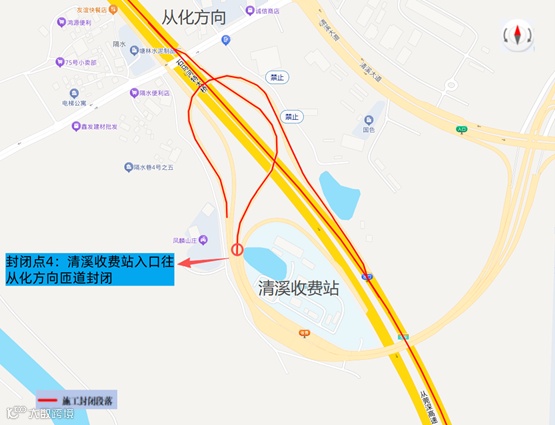 (三)封闭点4:清溪收费站入口往从莞深高速从化方向匝道实行全封闭交通管制。
