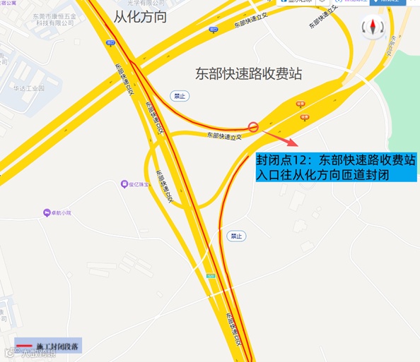 (八)封闭点12:东部快速路收费站入口往从莞深高速从化方向匝道实行全封闭交通管制。