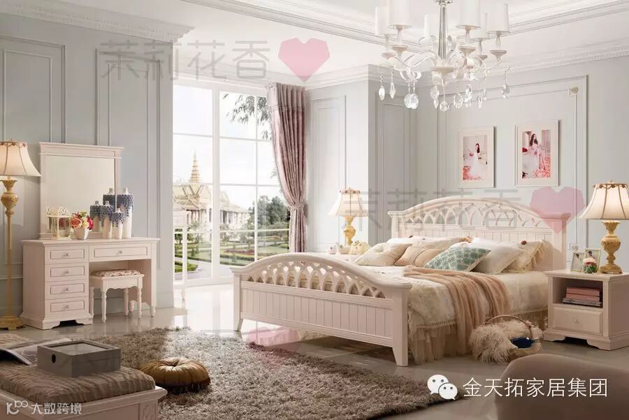 茉莉花香•韩式家具,以茉莉花白配以绚丽的色彩和精美的图案,实木框架结构手工雕花,传承历史痕迹与深厚的文化底蕴,以平滑流畅和错综蜿蜒的形式表现出来,其悠扬的韵味带给人娴静、舒适的感觉,再加上细节的精心营造,体现出完美主义的唯美情怀。