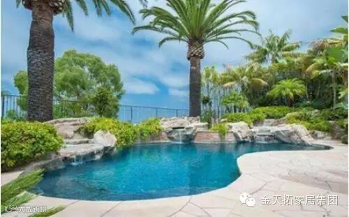 后院里美轮美奂的游泳池,这里也是科比两个女儿最喜欢的地方。泳池由浅到深,据说深水区可以达到跳水的标准。