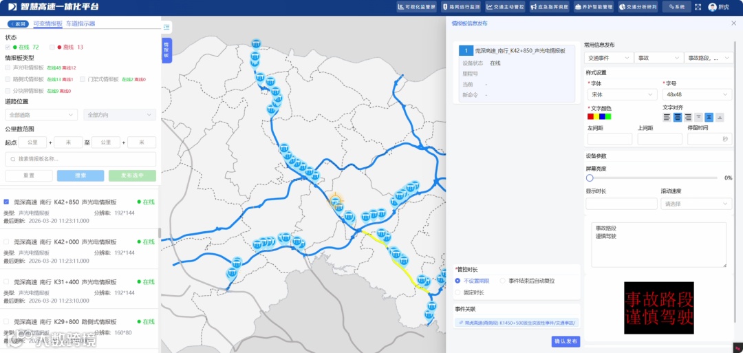该项目聚焦产业转型升级 - 交通运输领域,计划对常虎高速、莞深高速改扩建项目路段开展智慧化升级改造,采用视频事件检测、雷视感知、二维码报警、图商分发平台等先进技术,构建智慧高速一体化平台,搭建交通主动管控、路网运行监测、应急指挥调度等系统。项目落地后,预期实现干线通行效率提升 20%、应急响应效率提升 30%,有效解决复杂交通运行环境中流程繁、事件多、协同难等痛点,实现多源数据汇聚验证、事件信息快速触达、应急资源智能调度,推动东莞高速公路运营向智能化、精细化转型。