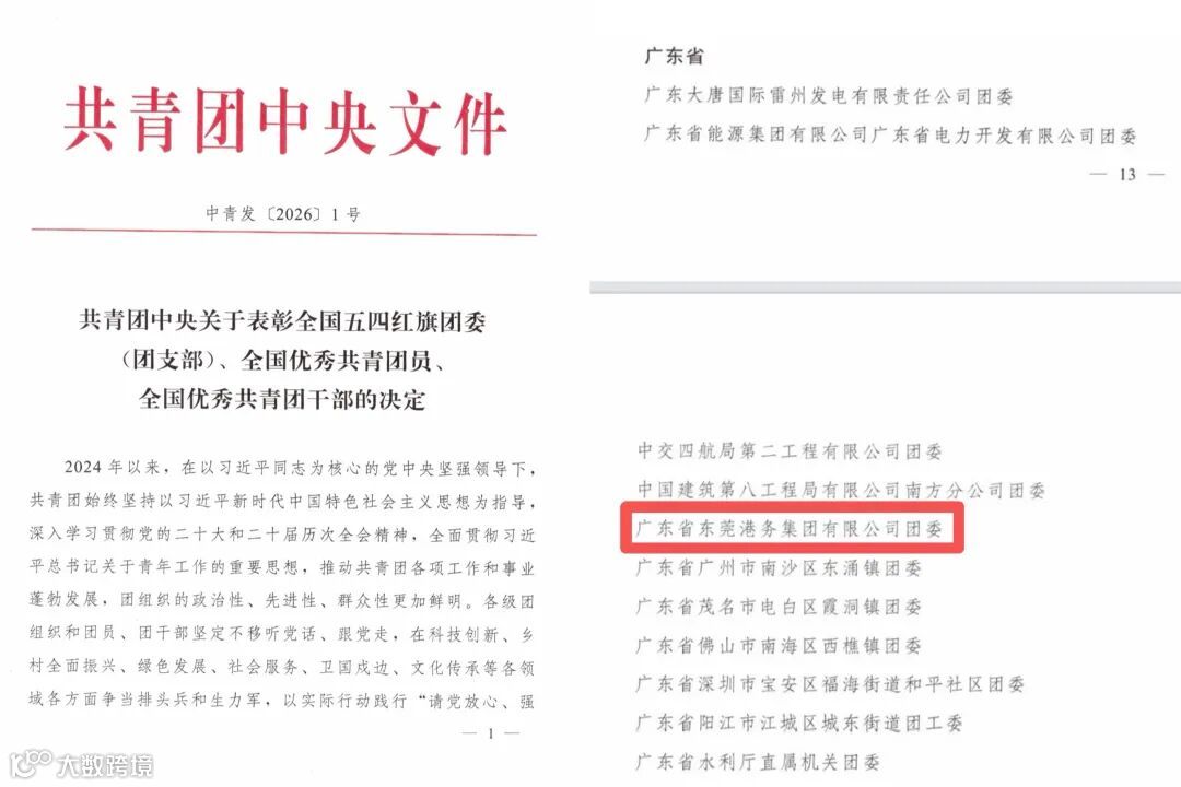 近日,东莞港务集团有限公司团委(以下简称“港务集团团委”)荣获“全国五四红旗团委”称号,是共青团中央设立授予基层团组织的团内最高荣誉。这份沉甸甸的荣誉,是团中央对东莞港务集团共青团工作和青年群体昂扬风貌的肯定,更是对港务集团团委紧密围绕国家战略、服务湾区发展、引领青年成长成才工作成效的生动褒奖。