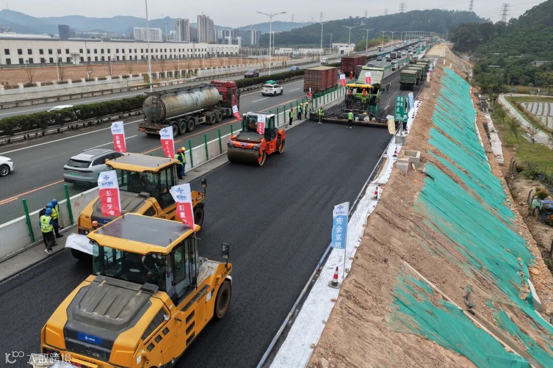 这两个好消息,标志着项目路面施工正式进入了“全速前进”的新阶段,为粤港澳大湾区的交通升级加油助力!