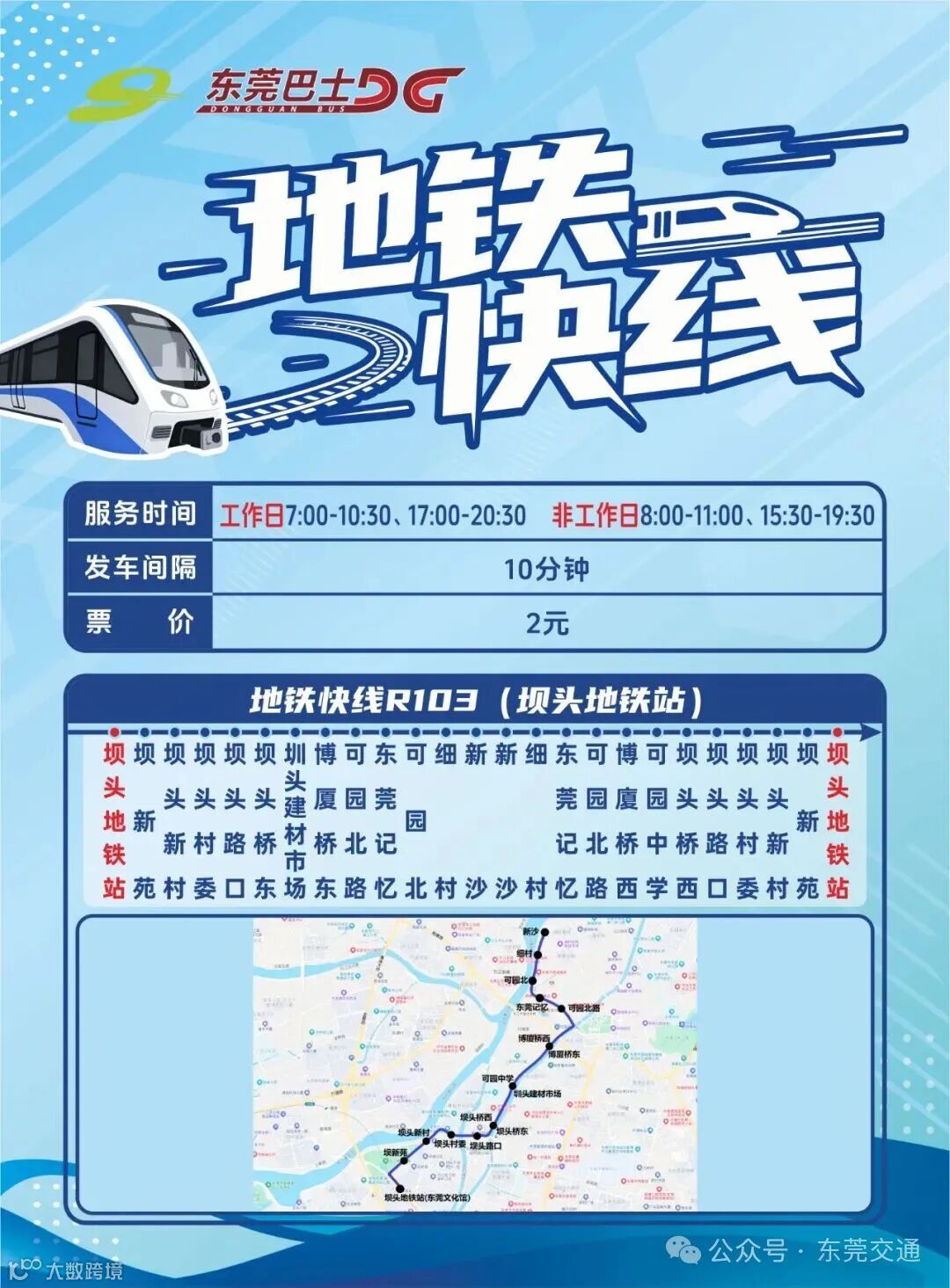 乘车Tips:市民朋友们可以乘坐东莞轨道交通1号线在“坝头”站下车,换乘“地铁快线R103”公交车前往“东莞记忆”
