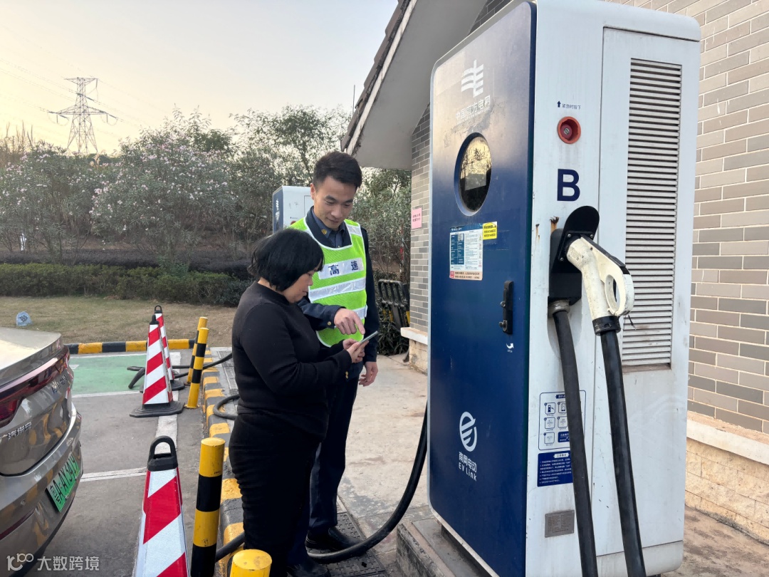 服务区保障更周全:严格落实车流疏导方案,精准调配人力物力,安排服务区管理员做好停车、充电等便民引导,为司乘人员打造舒适便捷的休憩空间。