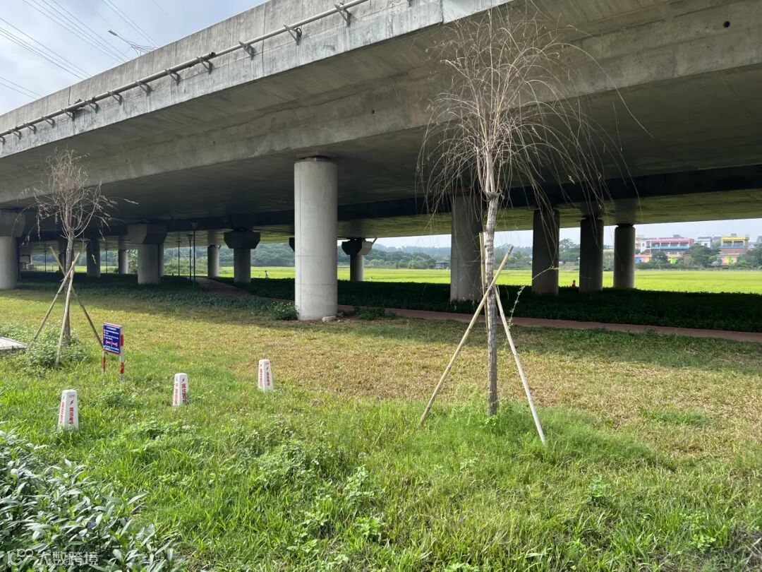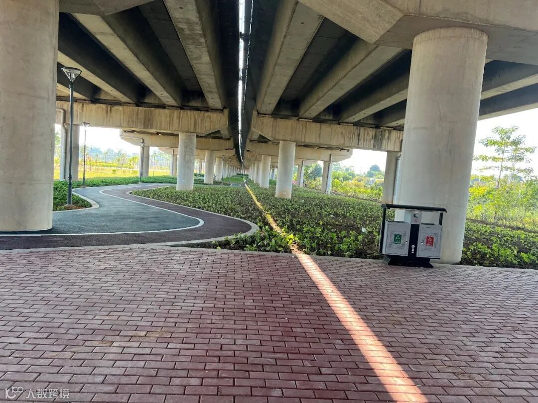 从莞高速横沥2号桥桥下空间:从莞高速横沥2号桥下休闲公园占地约3.4万平方米,桥下设置有人行道、绿化景观、休闲小品等,已成为横沥镇三角湖湿地公园的重要组成部分。该项目由集团无偿提供桥下空间,横沥镇负责投资建设,建成后实现桥下公园与周边湿地景观互联互通,让村民与群众可沿桥下栈道漫步,感受湿地公园的时代风貌与人文气息。