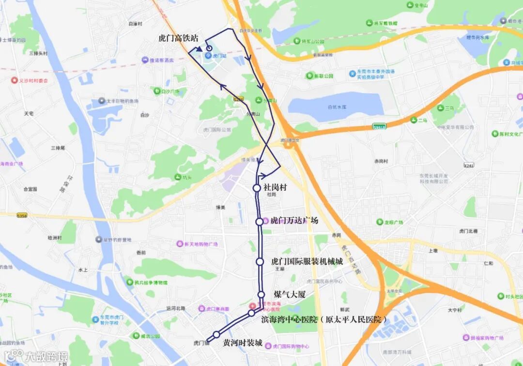 虎门高铁站、社岗村、虎门万达广场、虎门国际服装机械城、煤气大厦、滨海湾中心医院(原太平人民医院)、黄河时装城、黄河时装城、滨海湾中心医院(原太平人民医院)、煤气大厦、虎门国际服装机械城、虎门万达广场、社岗村、虎门高铁站
