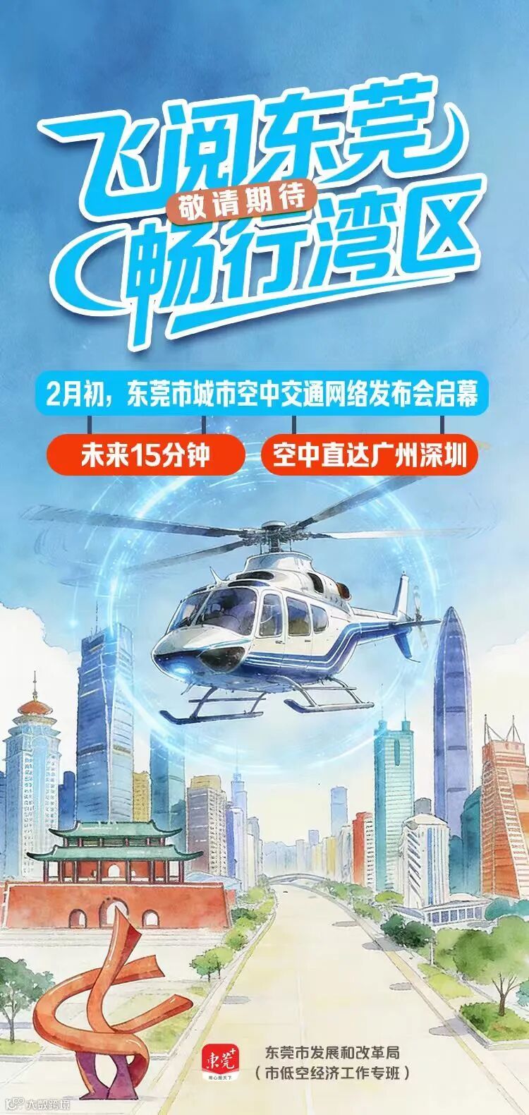 “飞阅东莞,畅行湾区”。这不仅是一次交通方式的革新,更是一次城市能级的跃升。2月初,让我们共同见证东莞在低空经济的赛道上振翅高飞,与湾区兄弟城市携手,共绘低空高质量发展的壮丽蓝图。