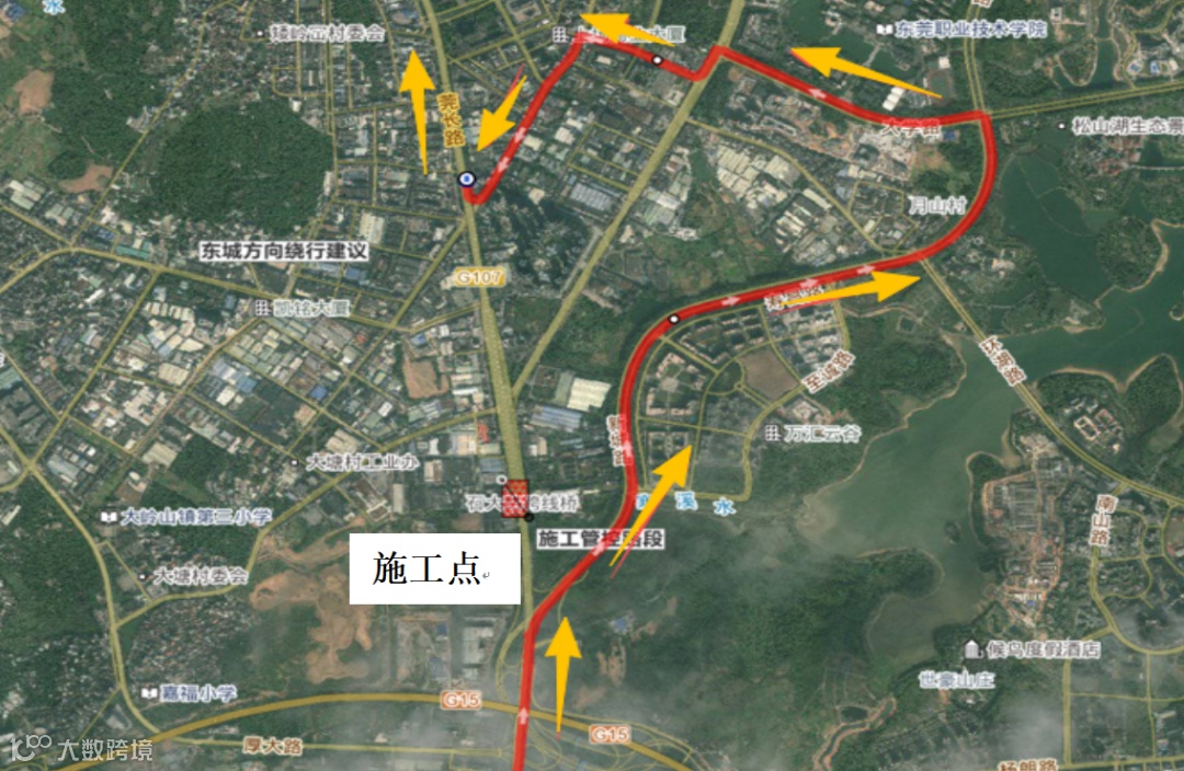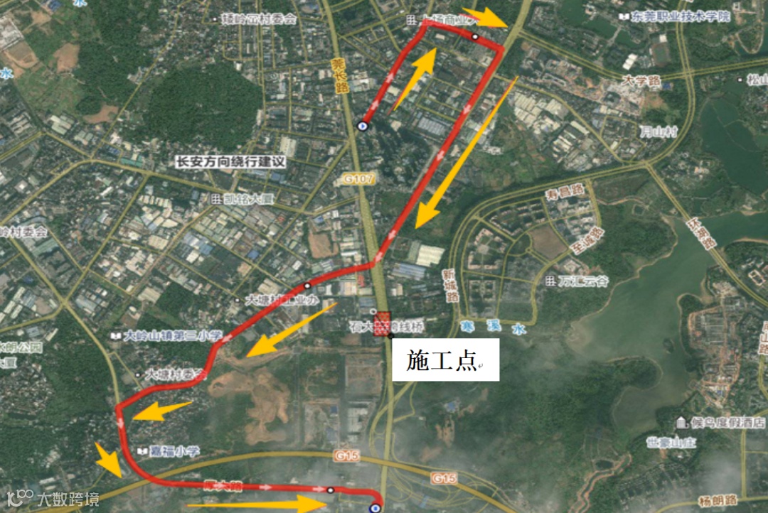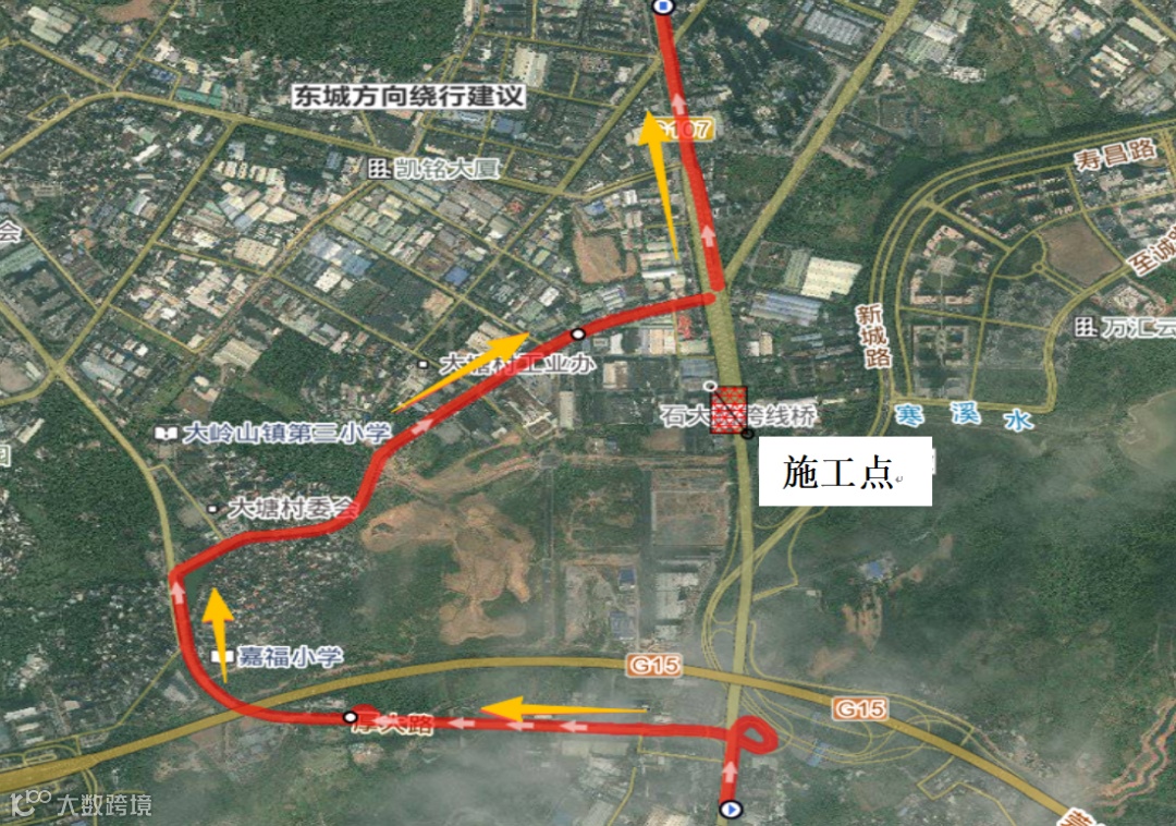 (一)东城方向绕行建议:厚大路→大塘路→莞长路。