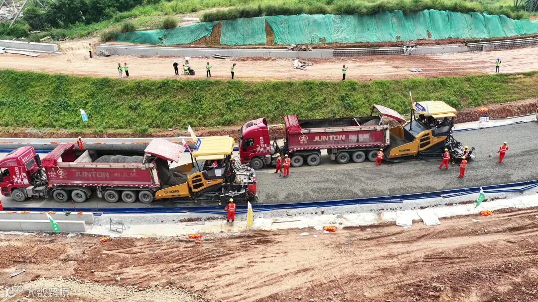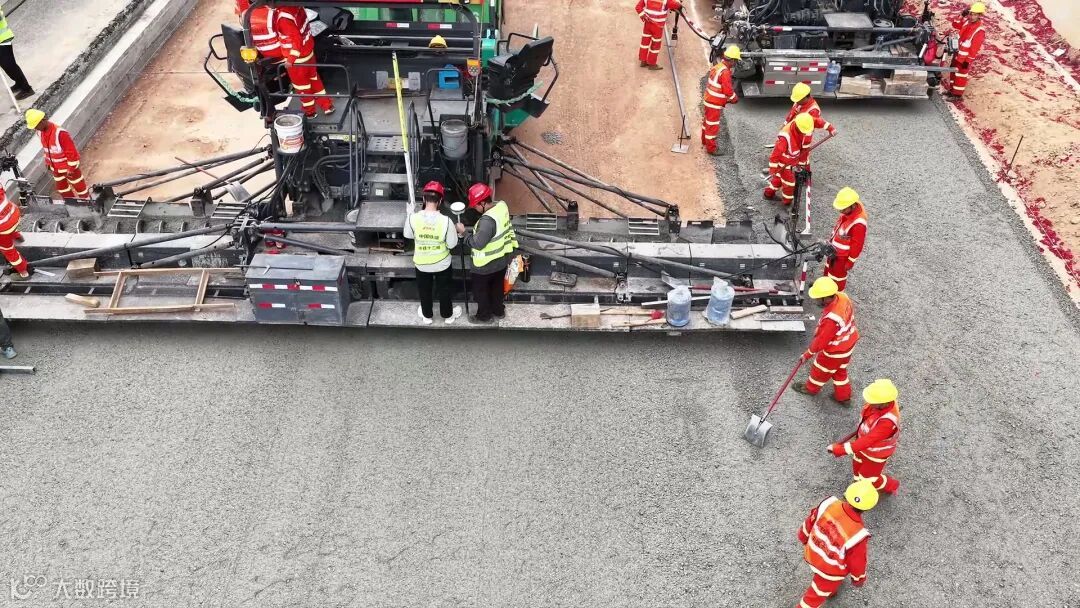 施工现场一派繁忙景象——机械轰鸣不绝,运输车辆穿梭往来,建设者们昼夜轮班奋战。在莞深高速十二标施工现场,水稳层摊铺机正在有序作业,工人们精细操作,均匀铺展每一层材料。现场负责人表示:“当前正值旱季施工黄金期,我们要紧抓有利时机,科学安排工序,在保障质量的前提下全力推进进度。”