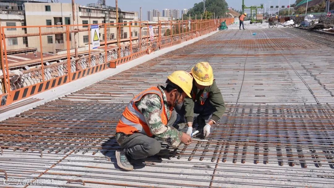 不远处,常虎四标桥面整体化层施工也在紧张进行。工人正在对已铺设的钢筋网进行精细化调校,并对模板进行最终加固作业,为即将开始的大面积混凝土浇筑做好充分准备。“大家争分夺秒,争取早日完成这一阶段任务,为后续桥面铺装和防撞护栏施工创造条件。”一位工人说道。