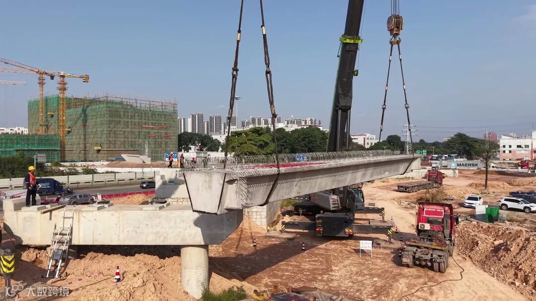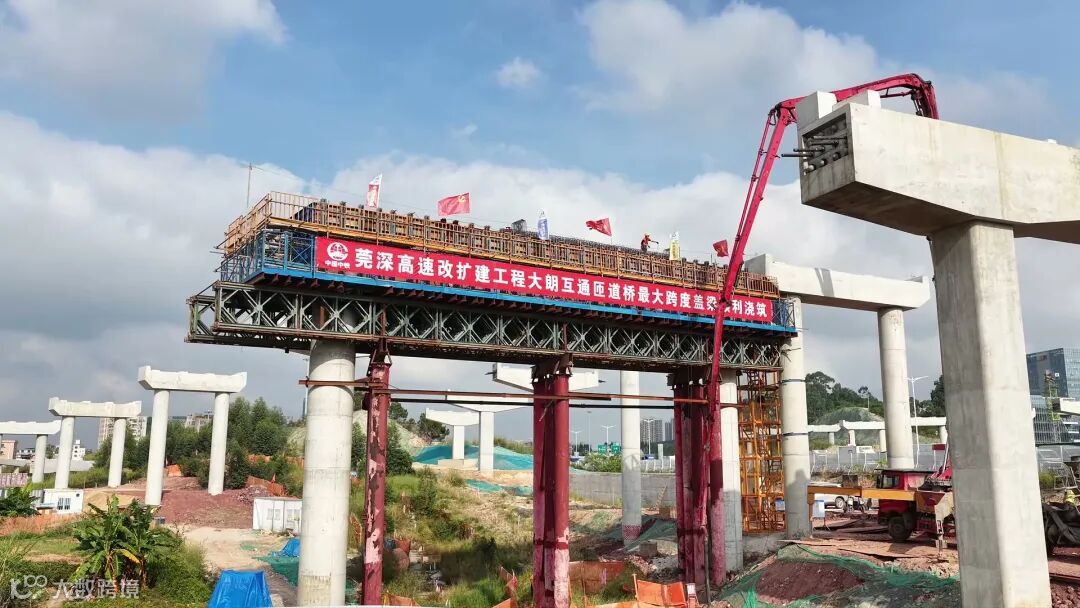 针对莞深高速原路侧拼宽施工用地狭小、运输通道单一的问题,孙晓刚表示:“我们采取‘时间换空间’模式,增加夜间作业,实现‘人歇机不停’,确保进度不受影响。目前,路基交付效率显著提升,路面摊铺已具备大面积展开条件,工程全面由‘线下’转向‘线上’施工,机电、交安绿化等工程也同步铺开,预制梁架设工作有序推进。”