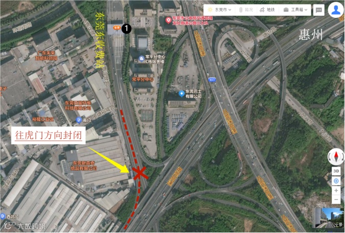 封闭东莞东收费站右转驶入常虎主线的右转匝道