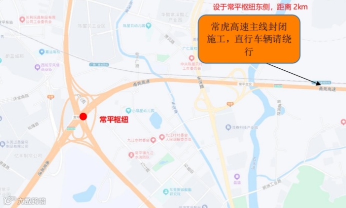 本次主要影响路段为常虎高速主线东莞东收费站至大有园枢纽方向(西行方向),封闭里程约为13.4km。