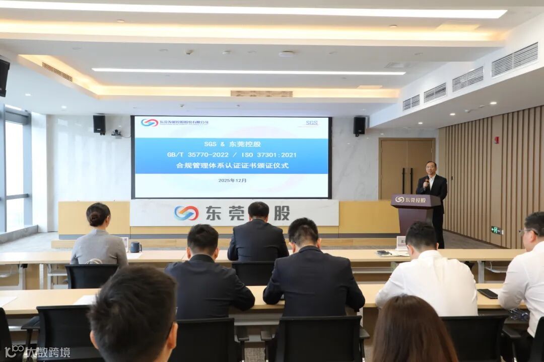 12月11日,东莞控股合规管理体系认证证书颁证仪式隆重举行,公司顺利通过SGS通标标准技术服务有限公司的严格审核,成功获得GB/T 35770-2022/ISO 37301:2021合规管理体系认证证书,成为东莞地区上市公司中首家获得该项认证的企业,标志着东莞控股在合规治理、风险管理及内部控制方面达到新高度。