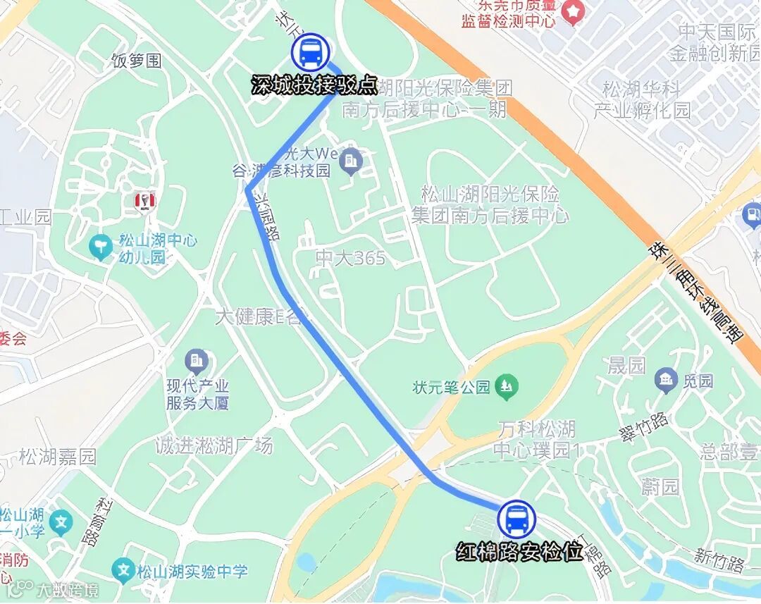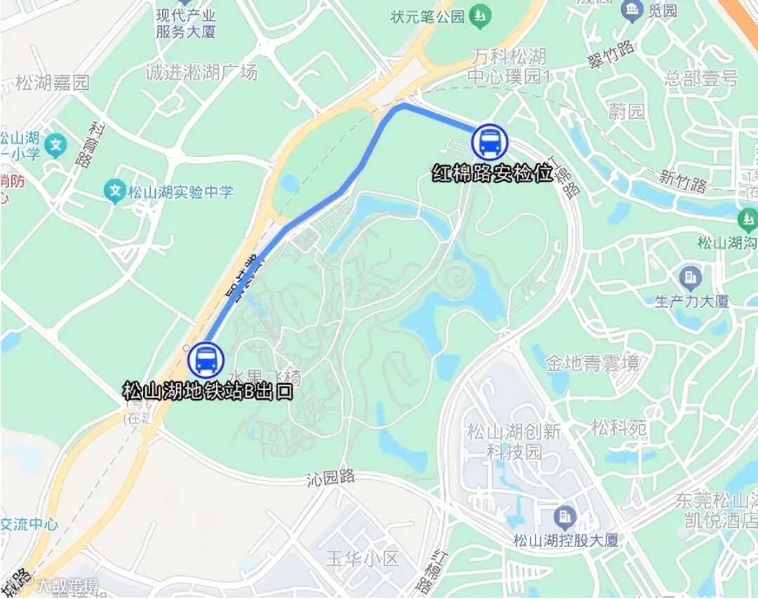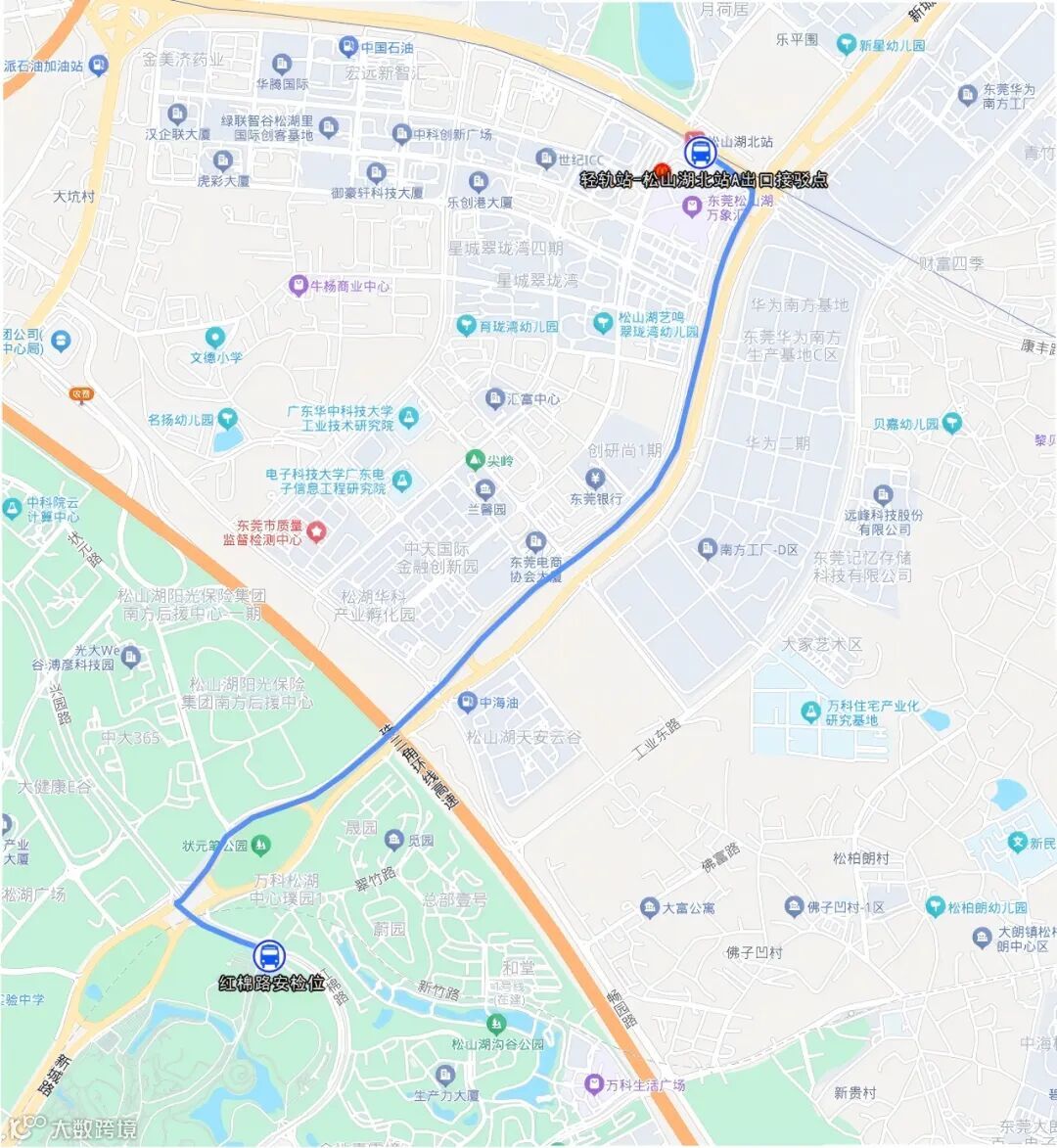 松山湖实验中学、松山湖北站、中以国际科技产业园、深城投智能装备产业园区停车场、松山湖地铁站公交站(B出口)
