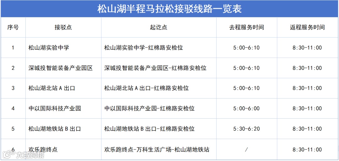 发车时间(人满即走):5:00—6:10(赛前)、8:30—11:00(赛后)