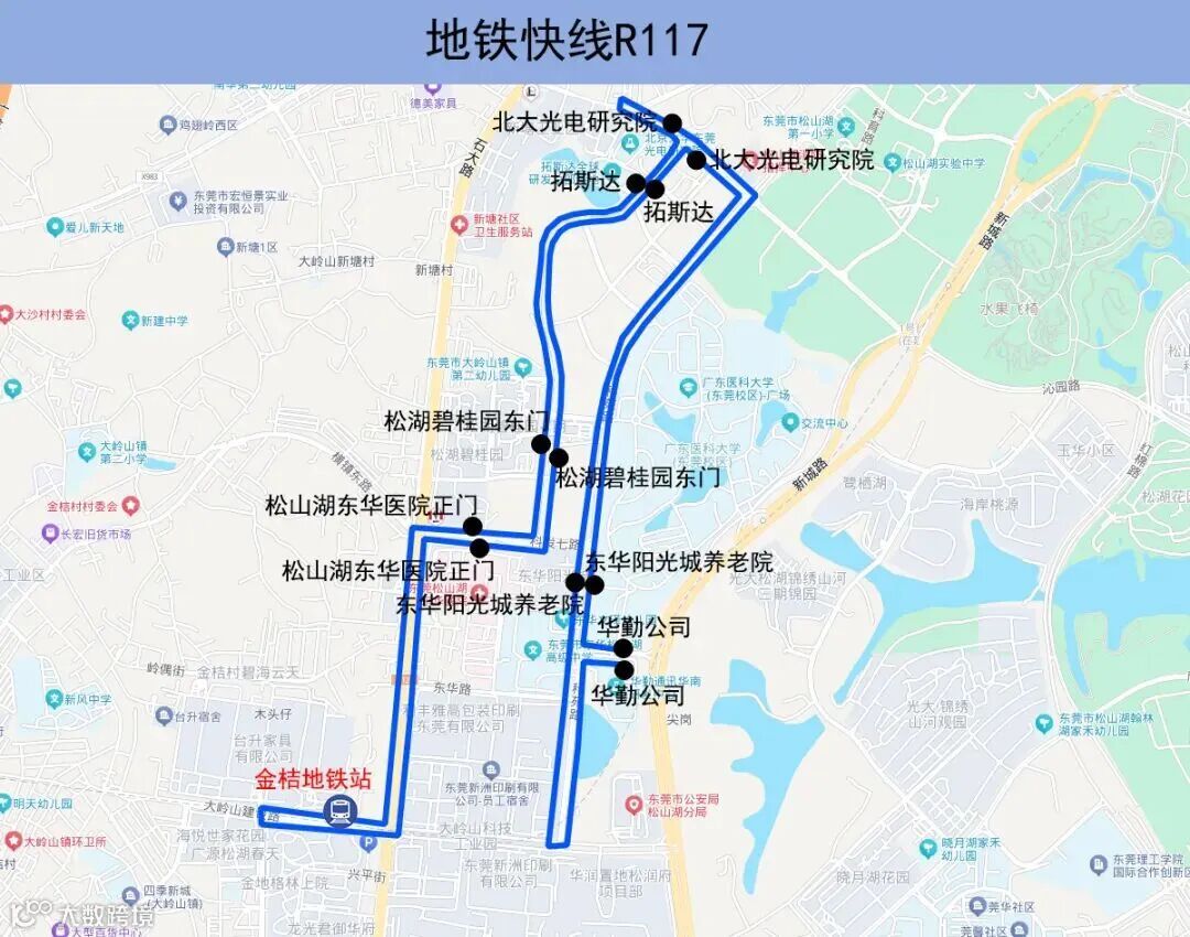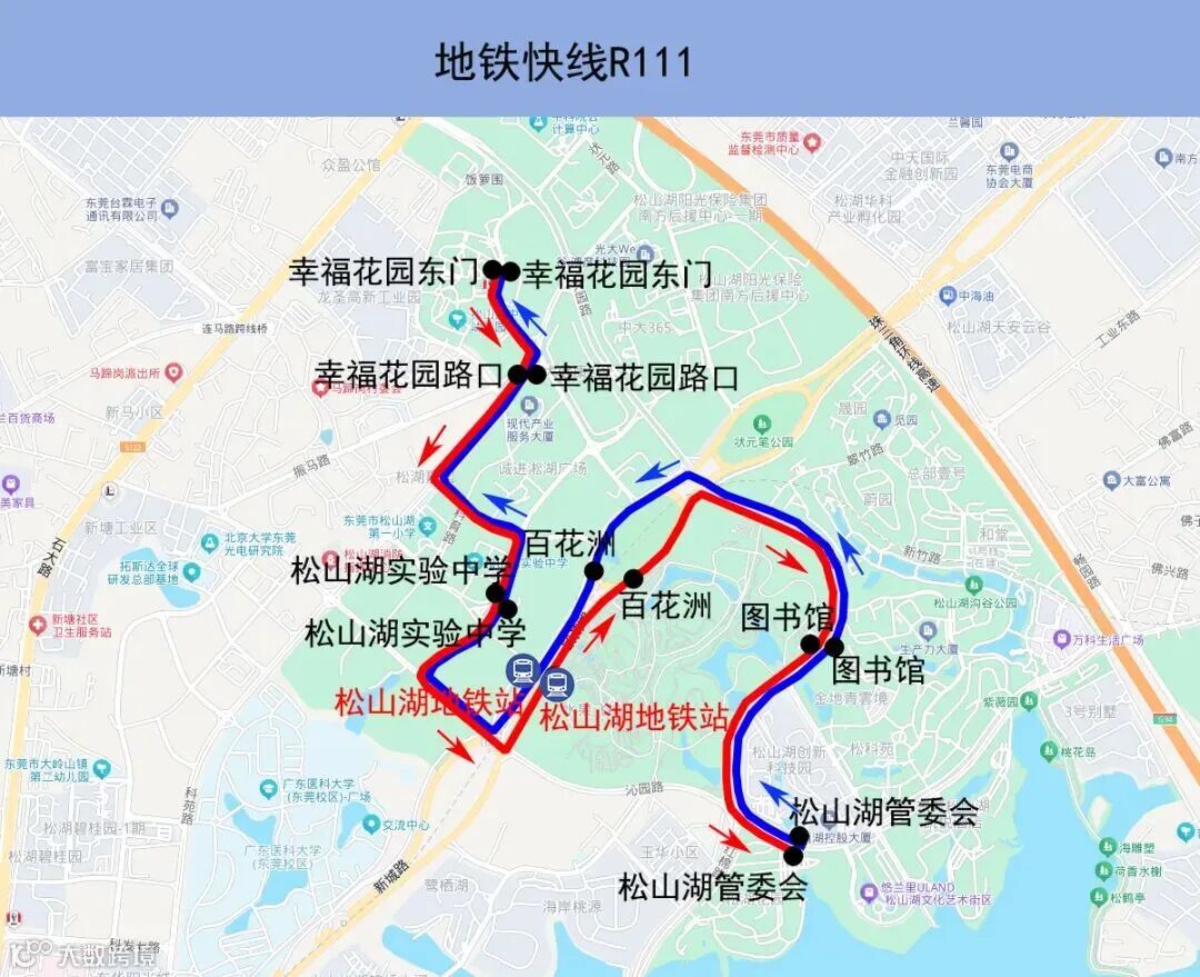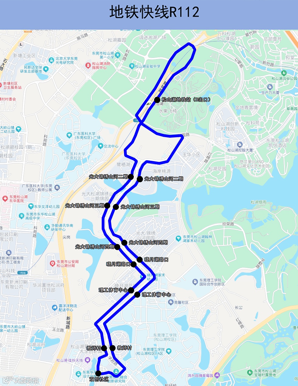 基于许多科研人才、企业职工反映的集中诉求,R112 地铁快线停靠的地铁站点由松山湖地铁站(沁园路)调整为松山湖地铁站B出口,减少市民步行距离。