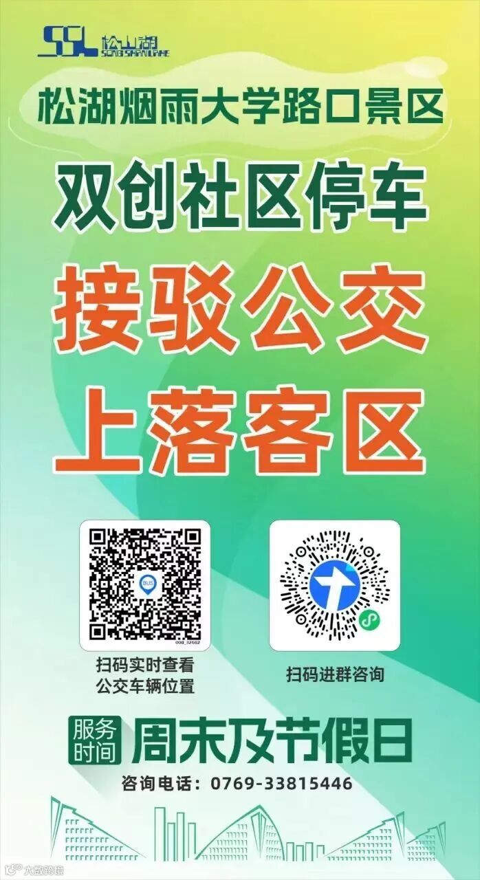 如果你是周末、节假日前来松山湖,欢迎从Uland悠兰里松山湖文化艺术街区,转乘松山湖“一圈一线”文旅公交专线,更多松山湖热门景点,等你来打卡!