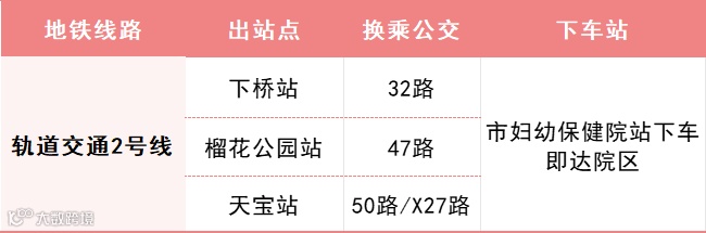 轨道交通2号线「珊美站」D2出口出站→换乘“广药大六院定制专线”→直达医院