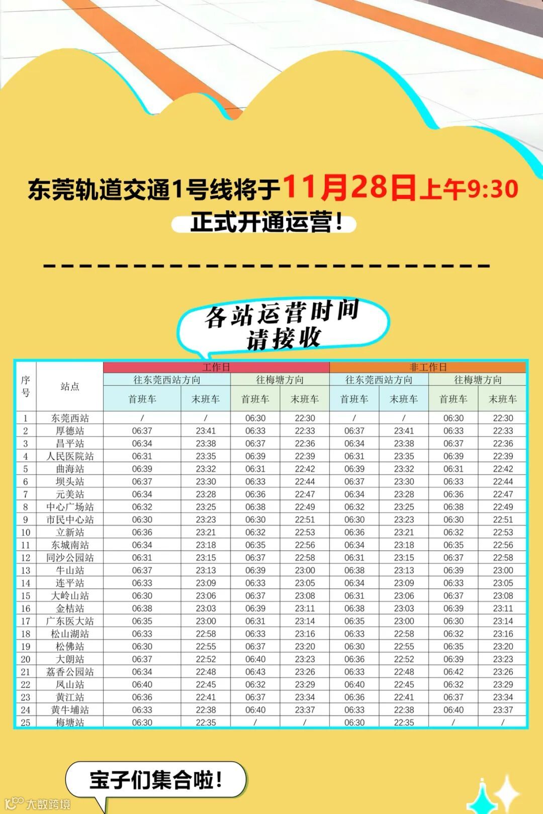 11月28日9:30,东莞轨道交通1号线正式开通运营!