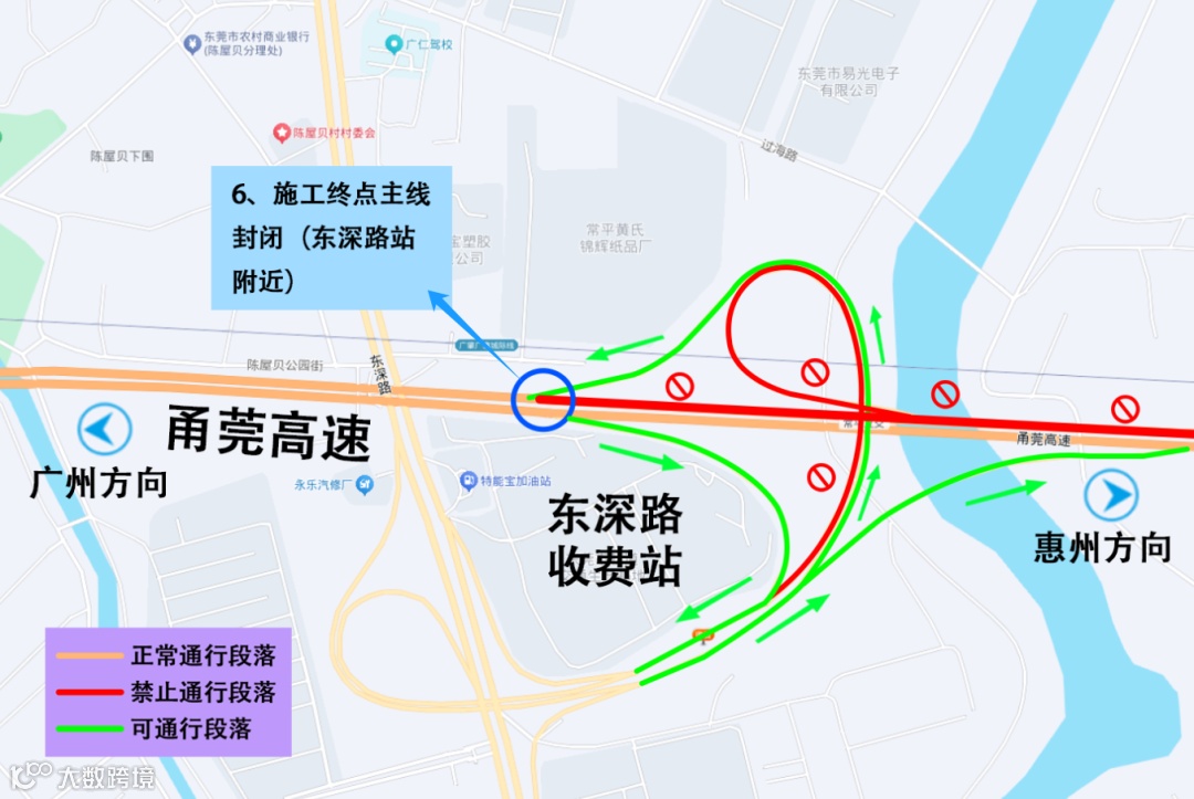 (四)施工终点在东深路站附近主线,届时东深路入口广州方向和惠州方向匝道均正常通行。