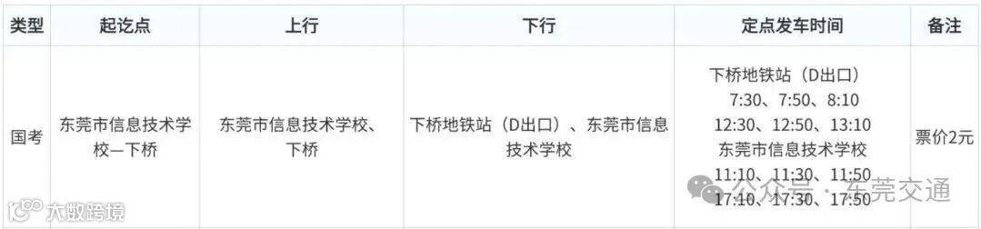 中央机关及其直属机构2026年度考试录用公务员笔试(下称“国考”)将于2025年11月30日举行,东莞考区共设8个考点。为保障考生公交出行,在各考点周边现有公交线路的基础上,考试当天将增开寮厦地铁站公交专线、下桥地铁站公交专线。详细的线路信息已为您整理在下文。