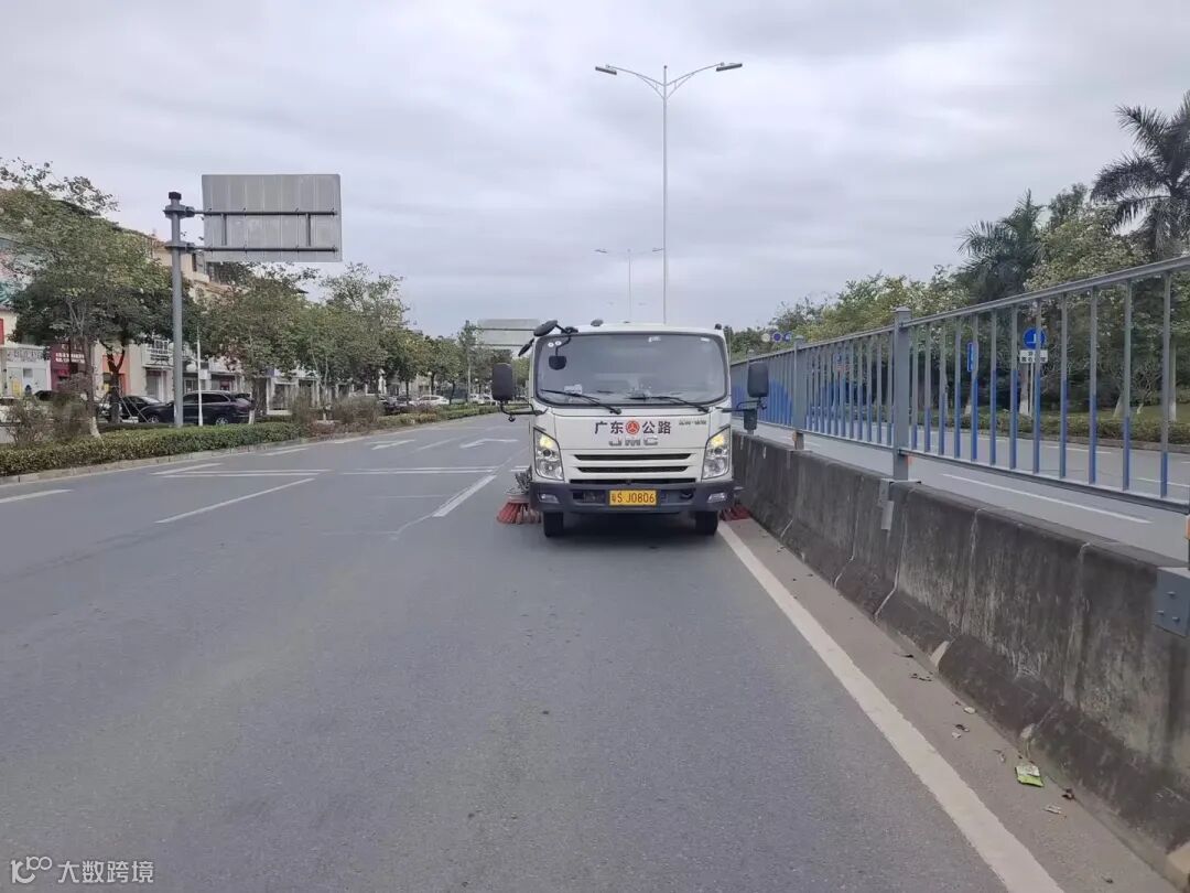 如日常保洁工作严格实行“每日2遍机械清扫+1次洒水+10小时人工巡回保洁”的作业模式,并通过自主开发的信息化平台实时监控作业过程,每日监督保洁完成率,确保道路清洁无死角。同时,针对全面梳理出的67处“卫生黑点”,定制专项保洁方案,明确清扫频次、责任人及监督人,开展重点清理整治。此外,还对管养路段内约8000米防撞墙进行高压冲洗,完成168支路灯的清洗工作,彻底清除长期附着的灰尘与污渍,让道路设施焕发光彩。