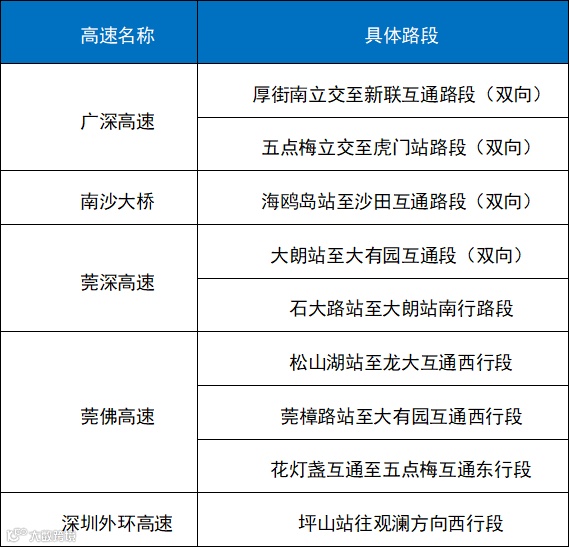 据研判,广州、惠州返莞方向高速公路将面临较大通行压力,以下11个路段易成为拥堵点,主要位于高速公路互通立交路段和瓶颈路段: