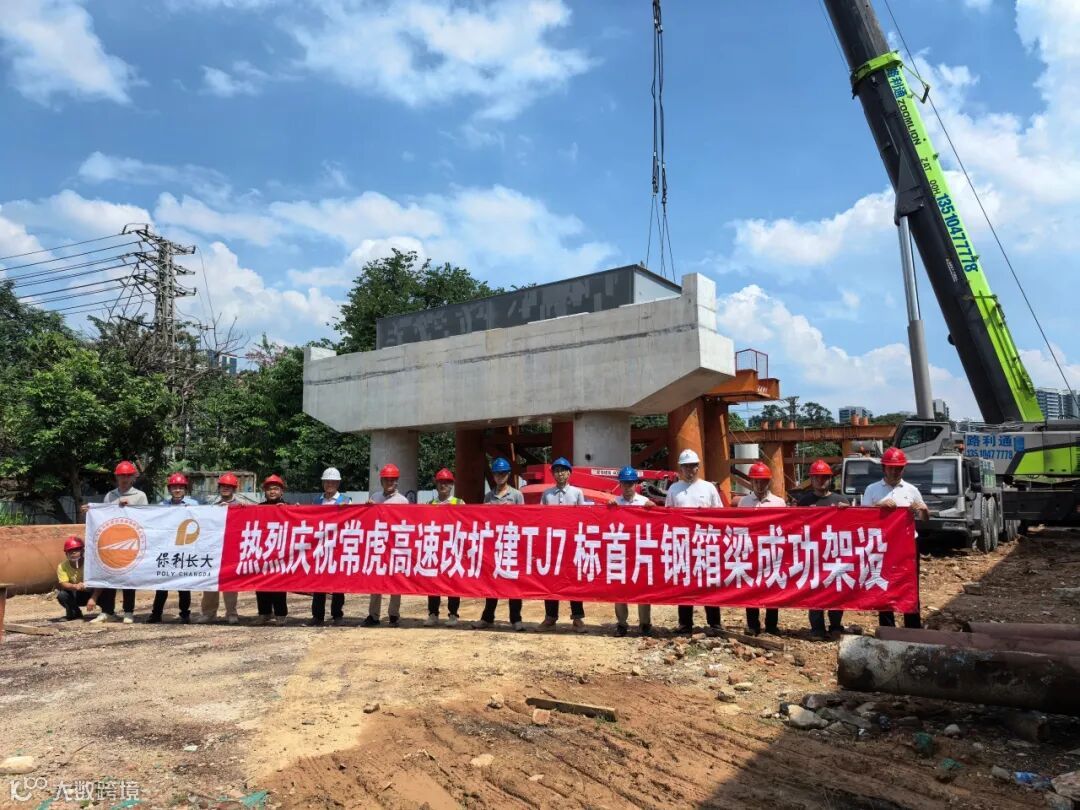 10月15日凌晨,正值华南地区旱季施工黄金期,随着500吨汽车吊将36.98吨重的钢箱梁(长9316mm、宽5333mm、高1617mm)稳稳架设在大岭山互通A匝道桥指定支座上,常虎高速改扩建工程旱季攻坚迎来关键突破——由保利长大承建的施工第七合同段大岭山互通A匝道桥首片钢箱梁吊装作业顺利完成。这一成果的取得,是市路桥公司第四管理处党支部联合项目党支部紧扣“旱季大干、提速攻坚”目标,以党建引领生产、党员冲锋在前的生动实践,标志着项目从下部结构施工转入上部结构攻坚新阶段,更为保障项目整体工期、助力大湾区交通升级筑牢根基。