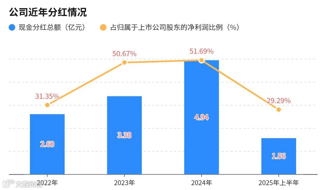 2025年上半年 >> 再次推出中期分红,每10股派发现金红利1.5元,共计派发1.56亿元,占归母净利润的29.29%。