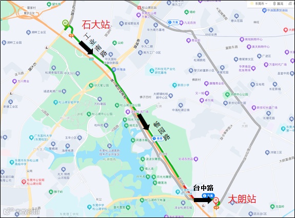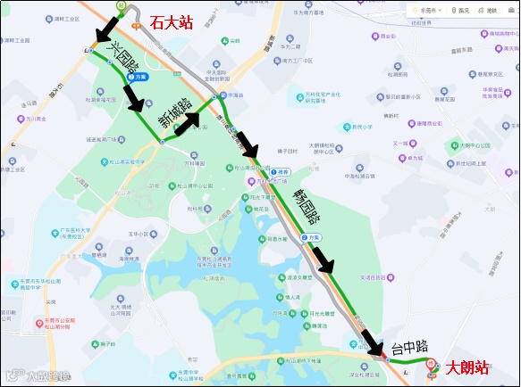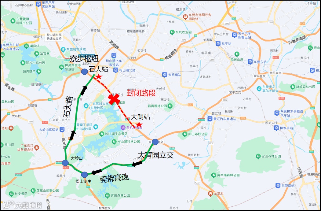 绕行路径2:莞深高速→石大路→兴园路→新城路→畅园路→台中路→大朗站→莞深高速