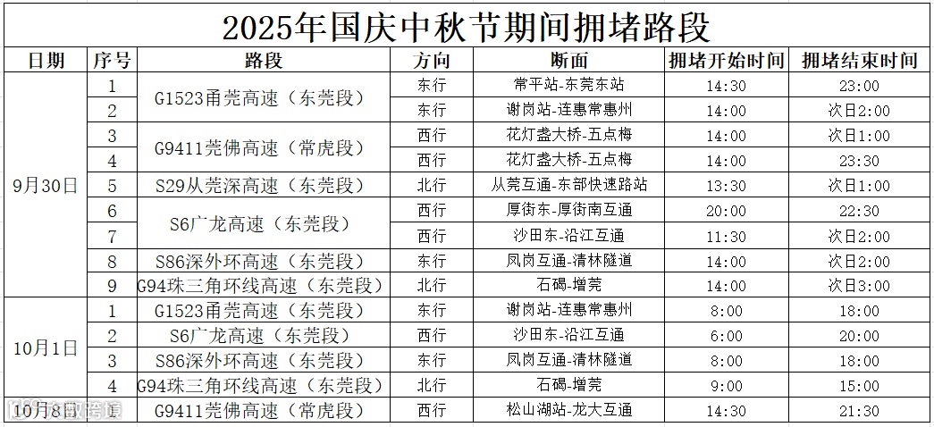 今年高速免费时段为10月1日0时至8日24时,10月9日0时起恢复正常收费。随着群众集中出行,集团辖下高速公路预计将迎来日均200万车次的出行高峰,预计9月30日14:00起车流量将明显增加,10月1日为最高峰值日,预估车流量将达到225万车次。
