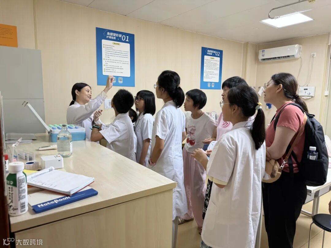第二站来到了光明眼科医院研学基地,讲解员为大家进行眼健康科普,生动有趣地讲述了眼睛的发育规律、如何使用科学的方法保护眼睛等内容,介绍了眼睛的构造功能以及常见眼病的预防与治疗,让大家对眼睛这一神奇的器官有了更清晰的认识。现场还安排了医护人员给小朋友们进行视力检查和电脑验光,了解孩子当前眼部情况,帮助孩子们更好地防治眼部疾病。除了理论知识学习,趣味实践也少不了,各组家庭在了解3D眼镜红蓝镜片的滤光原理后,亲手制作出一副属于自己的3D眼镜。当孩子们用自制的红蓝镜片捕捉到银幕上跃动的立体影像时,此起彼伏的惊叹声里蕴含着对视觉科学的直观认知。