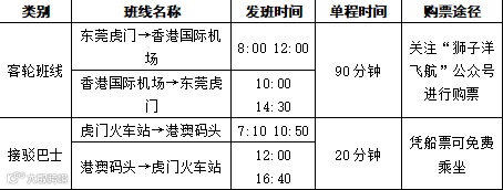 凭船票免费乘坐接驳巴士抵达虎门火车站
