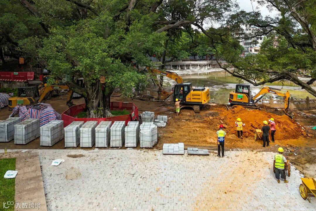 走进中山公园施工现场,是一派热火朝天的场景:地面铺装进入收尾阶段,崭新的篮球场轮廓已现,亲水平台与池塘水体治理正同步加速……目前,太平路口东侧片区改造工程整体进度达80%,一座融合生态、文化与休闲的“城市会客厅”呼之欲出!